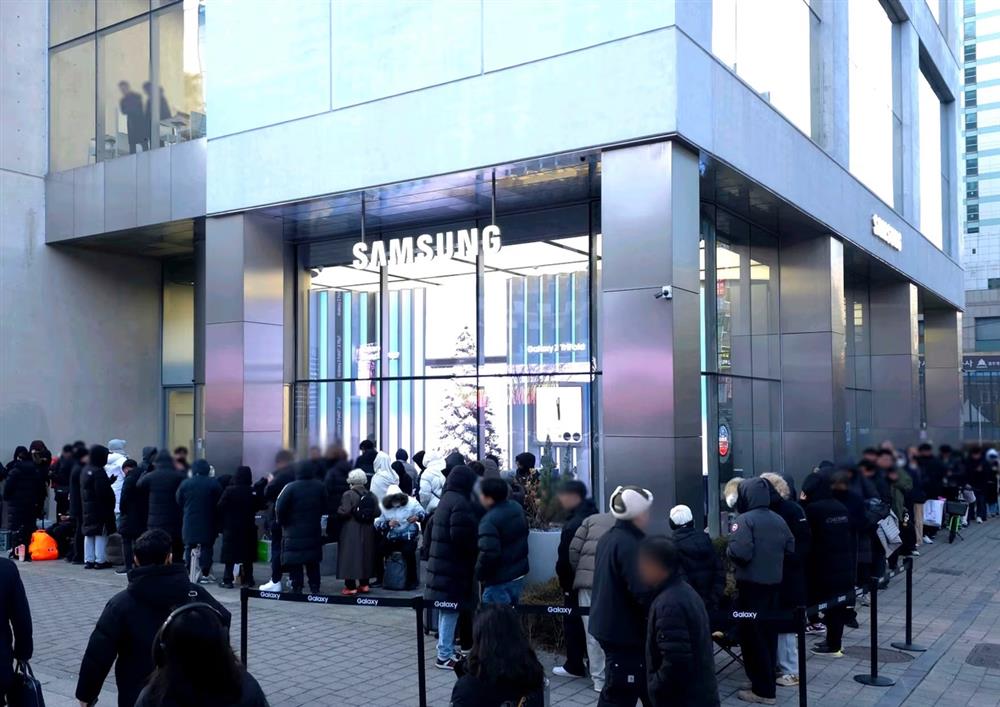 Ngày 12 tháng 12, khách hàng xếp hàng dài bên ngoài cửa hàng flagship của Samsung Electronics tại Gangnam, Seoul, khi Galaxy Z TriFold chính thức mở bán tại thị trường Hàn Quốc.