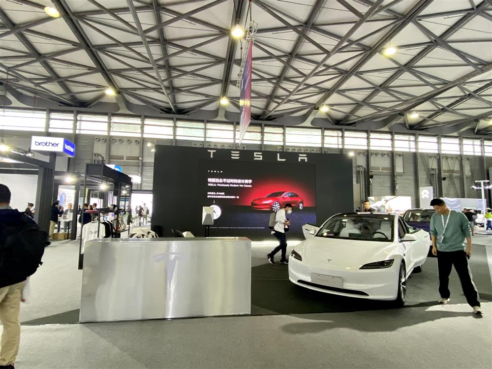 Khu vực trưng bày của Tesla trong gian hàng xe điện tại Triển lãm Tech G.