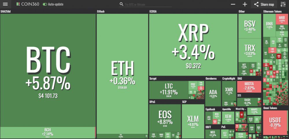 Vietnet24h - Trong phiên giao dịch hôm nay 7/1, đồng Bitcoin tăng mạnh tương đương 5,35% lên ngưỡng 4.100 USD, kéo theo toàn thị trường tiền kỹ thuật số đi lên.