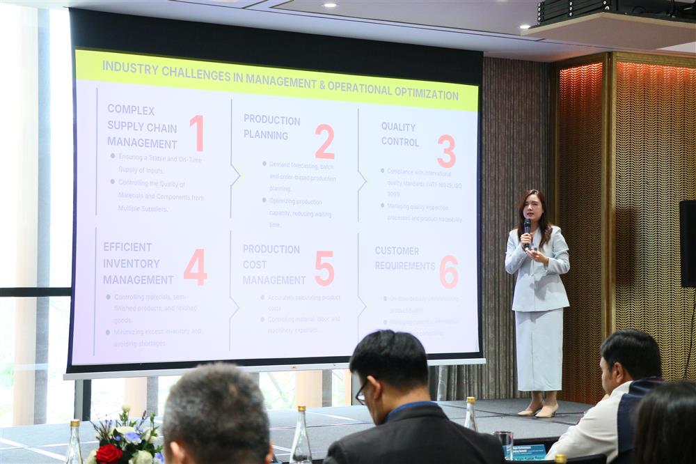 Giải pháp 1C:ERP do công ty HAMI giới thiệu, dưới sự trình bày của bà Phạm Hoài Anh, là một hệ thống quản lý nguồn lực doanh nghiệp (ERP) mạnh mẽ, được thiết kế đặc biệt để tối ưu hóa quy trình sản xuất phụ tùng xe máy và ô tô. Hệ thống này giúp các doanh nghiệp trong ngành sản xuất quản lý và kiểm soát toàn bộ chuỗi cung ứng, từ việc nhập nguyên liệu, quản lý kho bãi, đến sản xuất và phân phối sản phẩm cuối cùng.