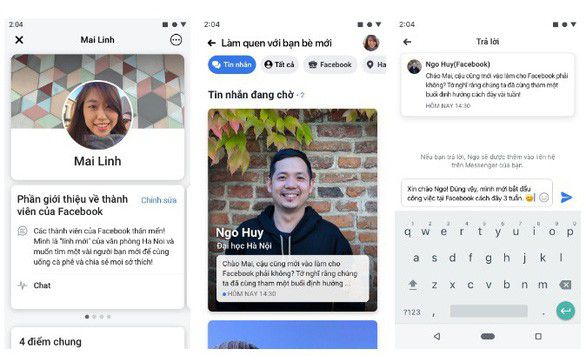 Với tính năng “Gặp gỡ bạn mới”, mọi người có thể thêm phần giới thiệu cá nhân và lựa chọn những hoạt động mình yêu thích với những người bạn mới (ví dụ như đi uống cà phê, đi tập thể dục chung), cũng có thể thay đổi hoặc bỏ các tùy chọn này bất cứ lúc nào.