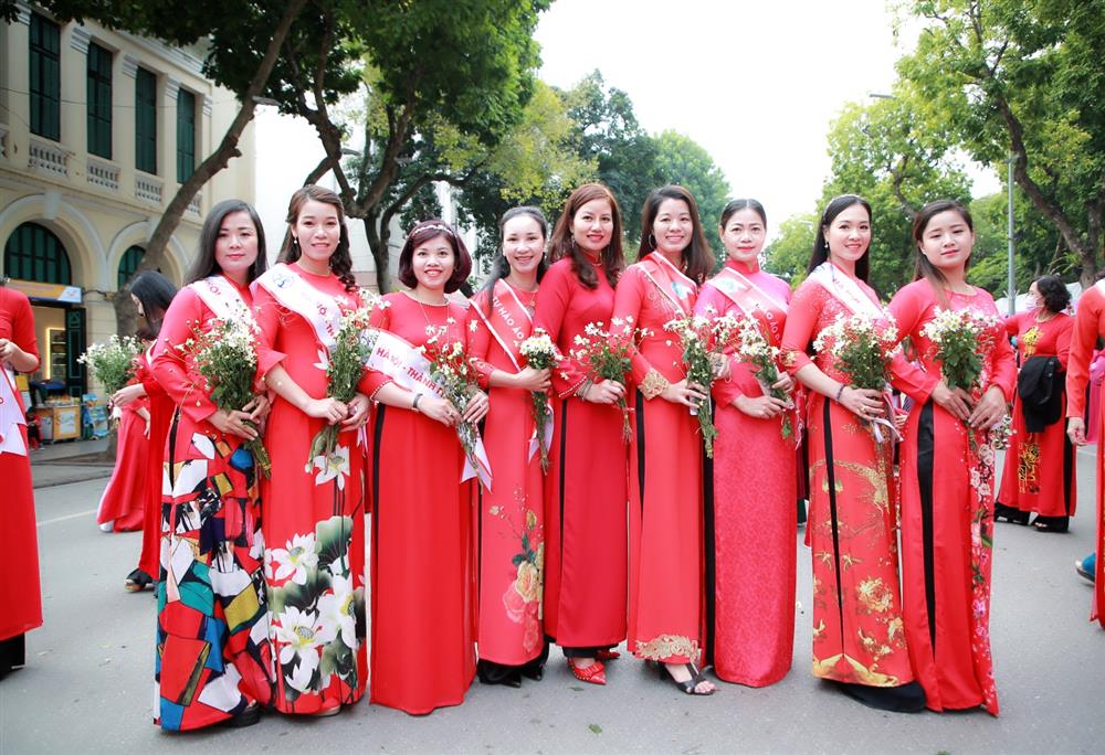 Tại lễ hội, hơn 500 cán bộ, hội viên, phụ nữ Thủ đô, các bé gái, nữ học sinh, sinh viên... đã tham gia diễu hành trong tà áo dài nhiều màu sắc rực rỡ, làm tôn lên nét đẹp của phụ nữ Thủ đô thanh lịch, văn minh.