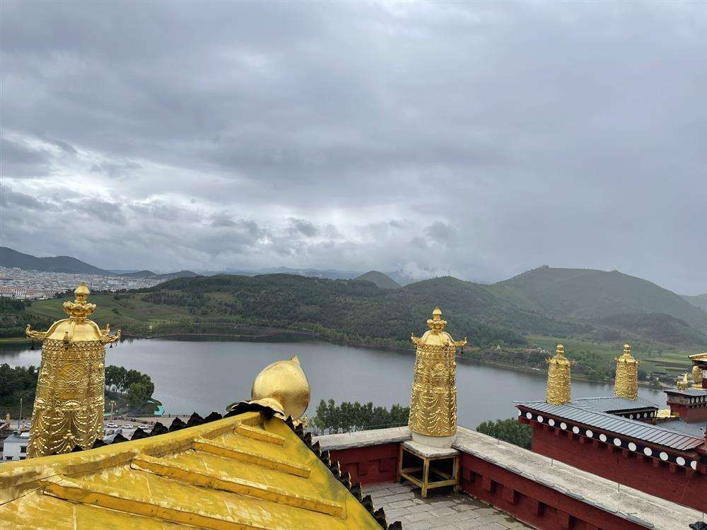 Phía trước tu viện là hồ nước trong xanh chảy từ cội nguồn núi cao, không chỉ là nguồn nước quý giá mà còn mang lại sự tươi mát cho khu dân cư và tu viện vào những ngày nắng. Đây cũng là điểm check-in nổi tiếng của du khách.