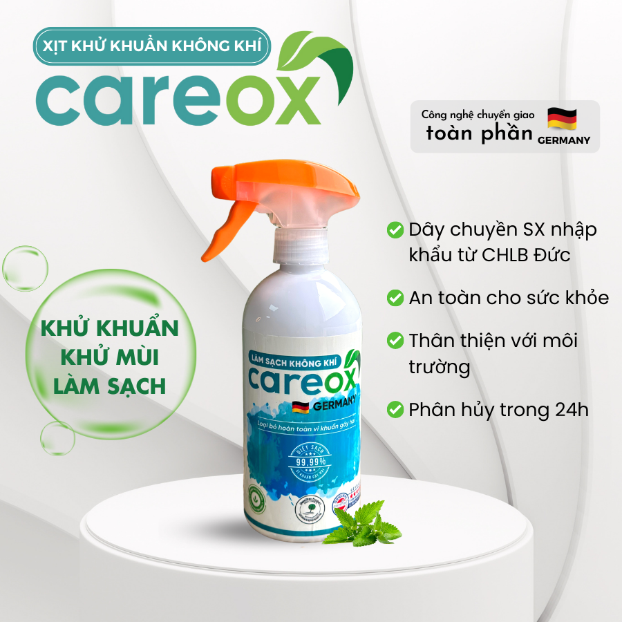 Careox là thương hiệu 100% đến từ CHLB Đức, chuyển giao công nghệ toàn phần. Với mục tiêu “Vì một tương lai xanh”, khi sản xuất các sản phẩm y tế, khử khuẩn khử mùi và tẩy rửa sinh học, Careox nghiêm khắc và nhất quán trong quá trình kinh doanh và lựa chọn nguyên liệu sản xuất khắt khe nhằm CAM KẾT đến người tiêu dùng TIÊU CHUẨN 4 KHÔNG