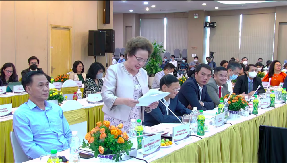 Bà Nguyễn Thị Nga, Chủ tịch tập đoàn BRG tham luận tại Hội nghị.