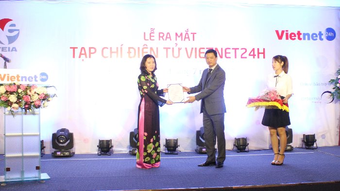 Dự lễ ra mắt Tạp chí điện tử Vietnet24h có Đại diện Hiệp hội Doanh nghiệp Điện tử Việt Nam ông Lưu Hoàng Long - Chủ tịch Hiệp hội, Tổng Giám đốc Tổng Công ty Cổ phần Điện tử Tin học Việt Nam; ông Nguyễn Đình Vinh - Phó Chủ tịch Hiệp hội, Tổng Giám đốc Công ty Hanel, và các uỷ viên ban chấp hành VEIA, các doanh nghiệp hội viên của VEIA cùng toàn thể cán bộ, phóng viên, biên tập viên, nhân viên của Tạp chí. Tại buổi lễ, ông Lưu Hoàng Long - Chủ tịch Hiệp hội đã trao Giấy phép hoạt động báo chí điện tử cho bà Đỗ Thị Thuý Hương - Tổng biên tập Tạp chí. Theo đó, Tạp chí điện tử Vietnet24h là cơ quan báo chí trực thuộc Hiệp hội Doanh nghiệp điện tử Việt Nam.