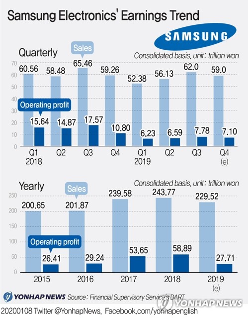 Nhà sản xuất chip nhớ số 1 thế giới ước tính thu nhập hoạt động trong quý IV của họ ở mức 7,1 nghìn tỷ won (6,1 tỷ USD), giảm 34,26% so với một năm trước đó, nhưng tỷ lệ đọc cao hơn ước tính trung bình 6,5 nghìn tỷ won, chủ yếu dựa trên trở lại của sự phục hồi nhẹ của giá chip và phản ứng thị trường tốt hơn mong đợi cho điện thoại thông minh của nó.