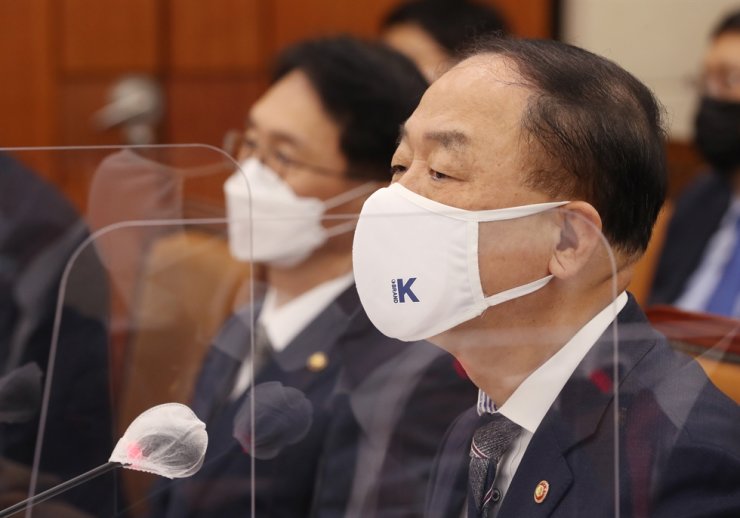 Phó Thủ tướng phụ trách các vấn đề kinh tế Hong Nam-ki phát biểu trong cuộc họp về an ninh kinh tế tại khu liên hợp chính phủ ở Seoul, Chủ nhật, ngày 7/11/2021 vừa qua.