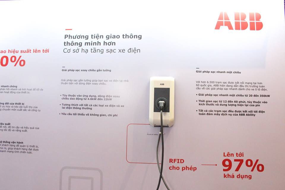 Giải pháp trạm sạc gắn tường xoay chiều của ABB - một trong những giải pháp sạc điện cho các phương tiện giao thông chạy bằng điện - sẽ được giới thiệu lần đầu tiên tại thị trường Việt Nam bởi ABB. Cải tiến này đảm bảo cho các dòng xe điện thông thường như ô tô, xe buýt hay xe tải có thể sạc nhanh và dễ dàng tại các trạm dịch vụ hoặc thậm chí tại nhà với chi phí thấp.