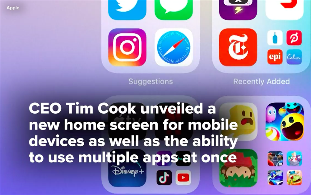 Giám đôc điều hành Tim Cook của Apple giới thiệu ra mắt các thiết bị di động hiển thị với khả năng dùng các ứng dụng đa nhiệm cùng lúc