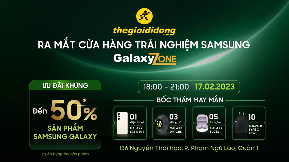 Ngày 17 tháng 02 năm 2023, Công ty điện tử Samsung Vina hợp tác cùng Công ty Cổ Phần Thế Giới Di Động sẽ chính thức ra mắt thương hiệu bán lẻ GalaxyZone đúng vào dịp mở bán sớm Galaxy S23 Series khiến Samfan vô cùng háo hứng với cơ hội sở hữu siêu phẩm ngay trong không gian công nghệ hiện đại bậc nhất theo tiêu chuẩn Samsung toàn cầu.
