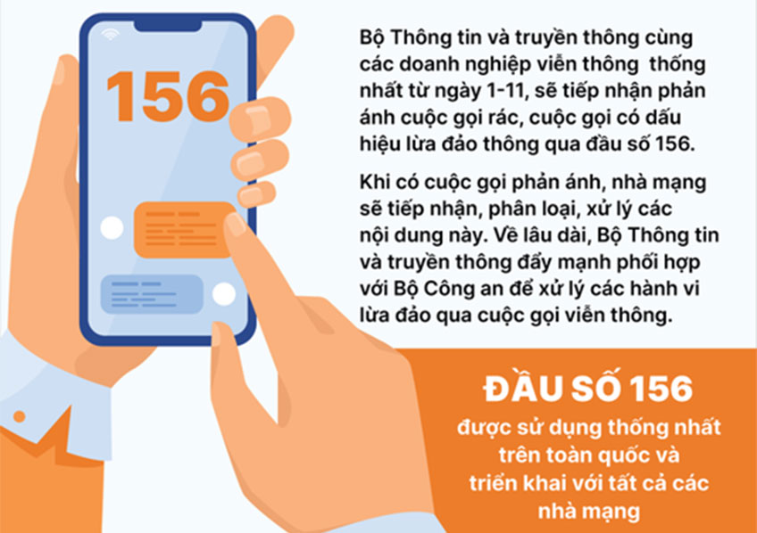 Trước tình trạng các cuộc gọi lừa đảo gia tăng, Bộ TT&TT cùng các doanh nghiệp viễn thông đã quyết định từ ngày 1/11/2022 sẽ triển khai, mở rộng việc tiếp nhận phản ánh về cuộc gọi rác, cuộc gọi có dấu hiệu lừa đảo thông qua hình thức cuộc gọi tới đầu số 156 (miễn phí).