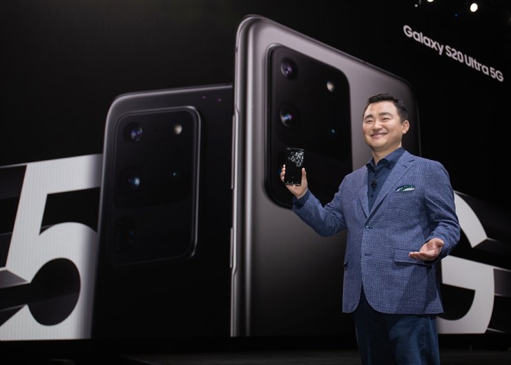Roh Tae-moon, người đứng đầu bộ phận di động của Samsung, giới thiệu S20 Ultra mới trong "2020 Galaxy Unpacked" tại Cung điện Nghệ thuật của San Francisco, vào thứ ba, ngày 11 tháng 2 năm 2020. Ảnh: Samsung Electronics