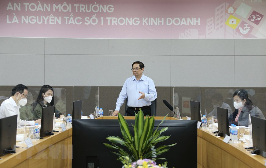 Hoan nghênh các chiến lược phát triển lâu dài ở Việt Nam, Thủ tướng khẳng định: Chính phủ Việt Nam sẽ luôn đồng hành với doanh nghiệp trong mở rộng sản xuất, phát triển kinh tế bền vững. Thủ tướng mong muốn doanh nghiệp hết sức quan tâm tới các chính sách phúc lợi cho người lao động, bởi quan điểm nhất quán của Việt Nam là “không hy sinh phúc lợi để chạy theo tăng trưởng kinh tế đơn thuần”. Khẳng định Việt Nam đang tập trung mọi nguồn lực để tiêm chủng miễn phí cho toàn dân cũng như đẩy nhanh tiến độ để sản xuất vắc xin phòng Covid-19 trong nước. Thủ tướng Chính phủ Phạm Minh Chính hi vọng Samsung yên tâm và tin tưởng vào công tác phòng, chống dịch của Việt Nam.