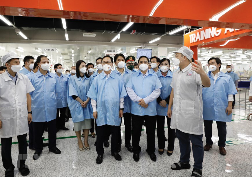 Thủ tướng Phạm Minh Chính thăm nhà máy sản xuất, lắp ráp điện thoại và làm việc với Công ty TNHH Samsung Electronics Việt Nam. Hiện công ty có 38.000 lao động, tỉ lệ tiêm vắc xin mũi 1 đạt 18% và mũi 2 là 13%.