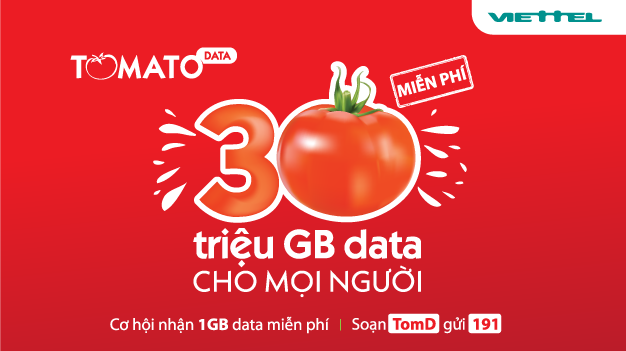Với mong muốn ai cũng được dùng Internet trên di động để tiếp cận và trải nghiệm nhiều tiện ích hữu dụng trong cuộc sống ở bất kì lúc nào, bất kì nơi đâu, Viettel mang cơ hội sử dụng Internet miễn phí cho 30 triệu người với chương trình “30 triệu GB data cho mọi người” triển khai từ ngày 18/7 - 18/10/2018. Bên cạnh đó, Viettel cũng chính thức ra mắt gói cước Tomato Data với tính năng sử dụng không giới hạn thời gian, giúp người dùng có thể sử dụng dịch vụ Internet di động một cách thuận tiện nhất.