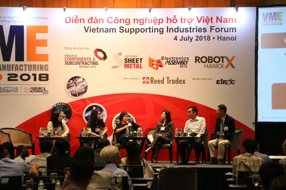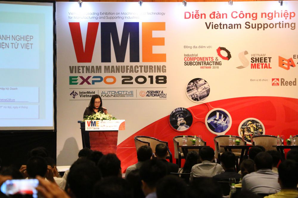 Vietnet24h - Chiều ngày 4/7, tại khách sạn Melia Hà nội đã diễn ra Diễn đàn Công nghiệp hỗ trợ Vietnam 2018 với chủ đề “Đối thoại giữa các nhà sản xuất công nghiệp hỗ trợ”. Chương trình do Công ty Tổ chức triển lãm Thái Lan Reed Tradex, công ty NC Network, Universal Robot, và Hiệp hội Doanh nghiệp Điện tử Việt Nam (VEIA) phối hợp tổ chức nhằm giúp các nhà sản xuất bắt kịp, cũng như chia sẻ quan điểm về xu hướng tiếp theo của ngành sản xuất điện tử.