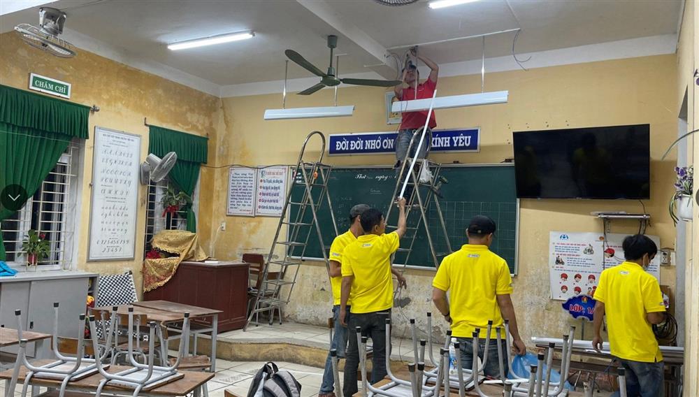Các kỹ thuật viên không quản ngày đêm để hoàn thành hệ thống chiếu sáng Điện Quang hiện đại, bảo vệ đôi mắt cho cả thầy và trò tại các trường học được chỉ định