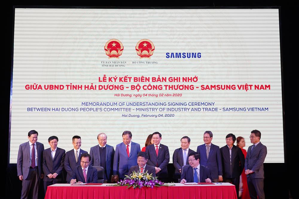 Đại diện cho lãnh đạo tỉnh Hải Dương, có đồng chí Nguyễn Mạnh Hiển, Uỷ viên trung ương đảng, Bí thư Tỉnh uỷ Hải Dương; Đại diện lãnh đạo Bộ Công thương, đồng chí Trần Tuấn Anh, Bộ trưởng Bộ Công Thương; Đại diện Công ty Samsung Việt Nam, ông Choi Joo-ho, Tổng Giám đốc đã tham gia ký Biên bản ghi nhớ ba bên: UBND tỉnh Hải Dương, Bộ Công thương và Công ty Samsung Việt Nam về chương trình tư vấn dành cho các doanh nghiệp tỉnh Hải Dương trong ngành công nghiệp hỗ trợ. Theo biên bản ghi nhớ, năm 2020, Samsung sẽ lựa chọn ít nhất 15 DN tỉnh Hải Dương thuộc lĩnh vực CNHT để triển khai chương trình đào tạo 3 tháng với các hoạt động tư vấn cải tiến năng lực cạnh tranh.