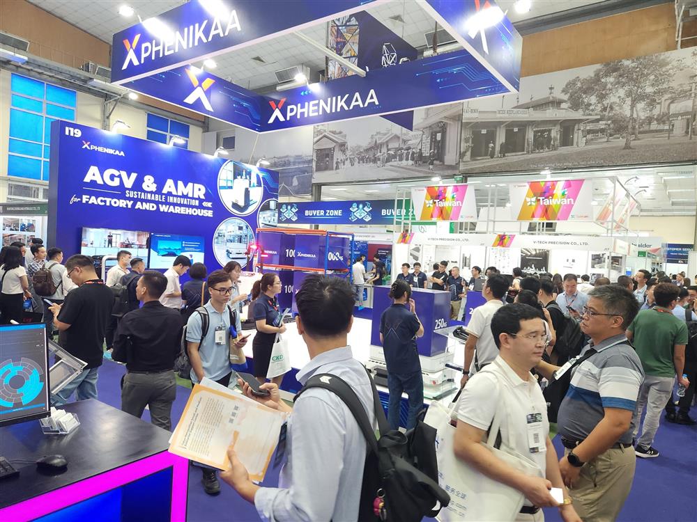 Đặc biệt, tại gian hàng của Phenikaa-X đã giới thiệu tới những người tham quan triển lãm Phenikaa-X AMR Pallet Mover là xe tự hành tiên tiến nhất (AMR) được thiết kế để vận chuyển hàng hóa nặng trên pallet với độ an toàn và hiệu quả cao. Kết hợp các tính năng tiên tiến và công nghệ hiện đại, AMR Pallet Mover đáp ứng mọi nhu cầu vận chuyển trong môi trường công nghiệp hiện đại. Sản phẩm được thiết kế và sản xuất tại Việt Nam, mang thương hiệu hàng của người Việt.