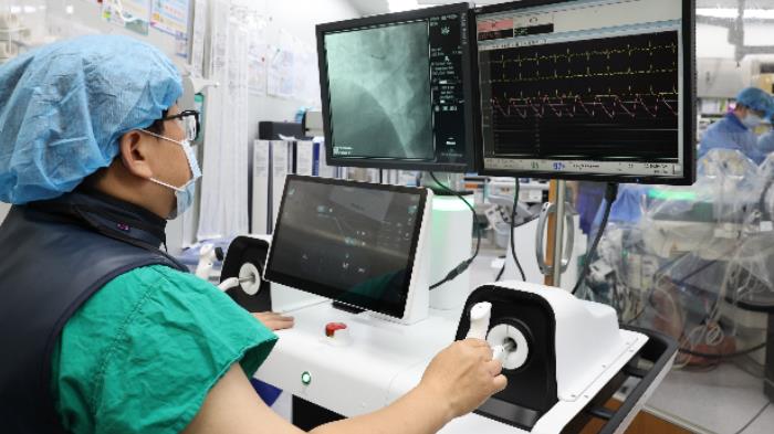 Robot AI vật lý do Hàn Quốc sản xuất được ứng dụng trong chăm sóc tim mạch Vietnet24h - Trung tâm Y tế Asan sử dụng robot hỗ trợ can thiệp mạch vành qua da để điều trị bệnh nhân.